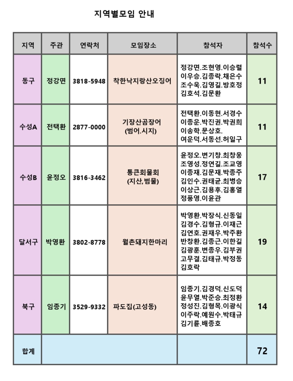 ´ë±¸ µ¿±¸ ´Þ¼±¸ ºÏ±¸ ¼ö¼ºA ¼ö¼ºB 5°³ Áö¿ªº° 3¿ù ¿ù·Êȸ°¡ 72¸íÀÌ Âü¼®ÇÑ °¡¿îµ¥ ¿·Á ¹Ý°©°í Áñ°Å¿î ½Ã°£.. ÀÏÈç ÁîÀ½¿¡ ¤¾î º» ±æÀÒÀº µ¿±â, ÇØ¿Ü, ÀÛ°í µ¿±â µî ¸í´ÜÀ»